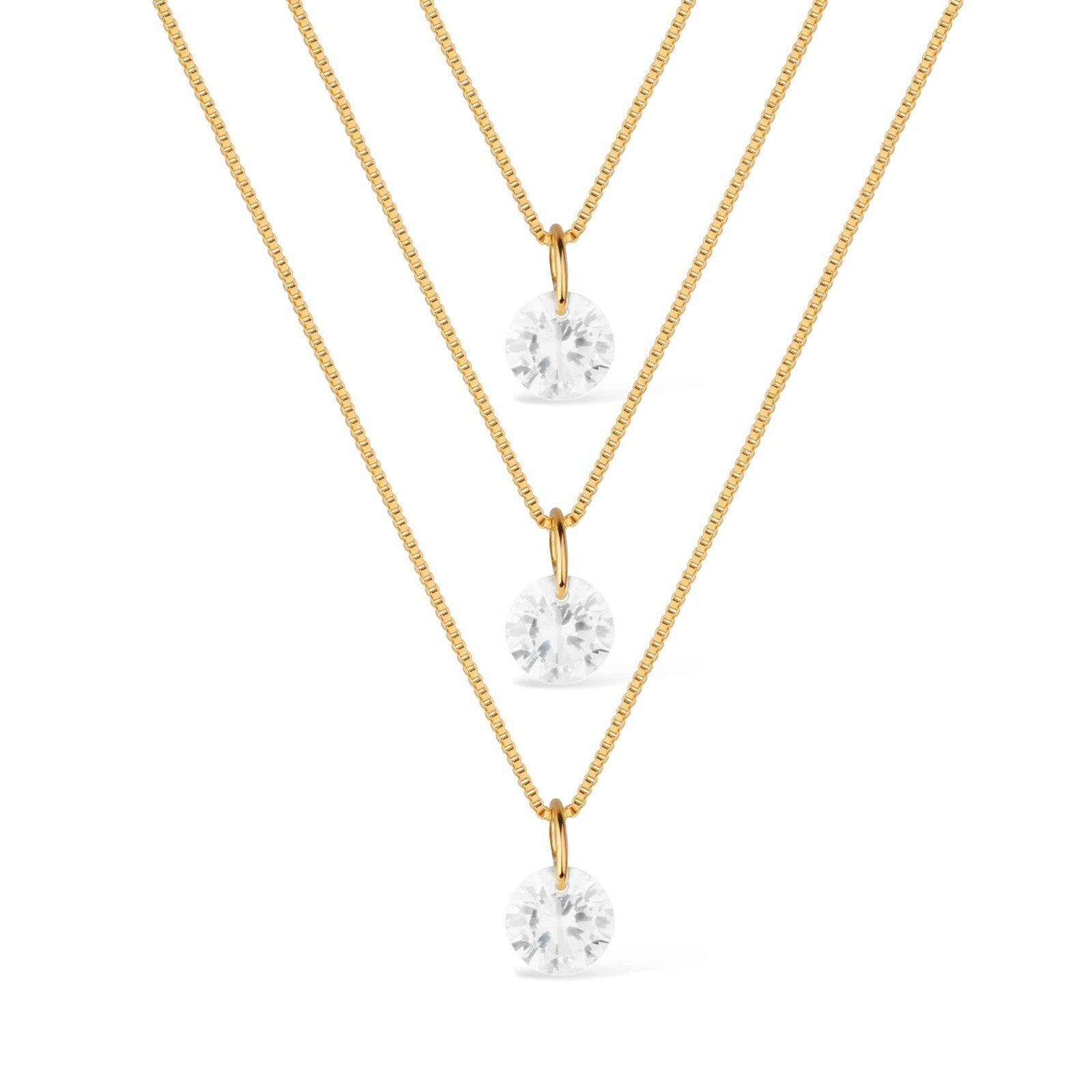 Colar Dourado Triplo 3 Pontos de Luz em Zircônia