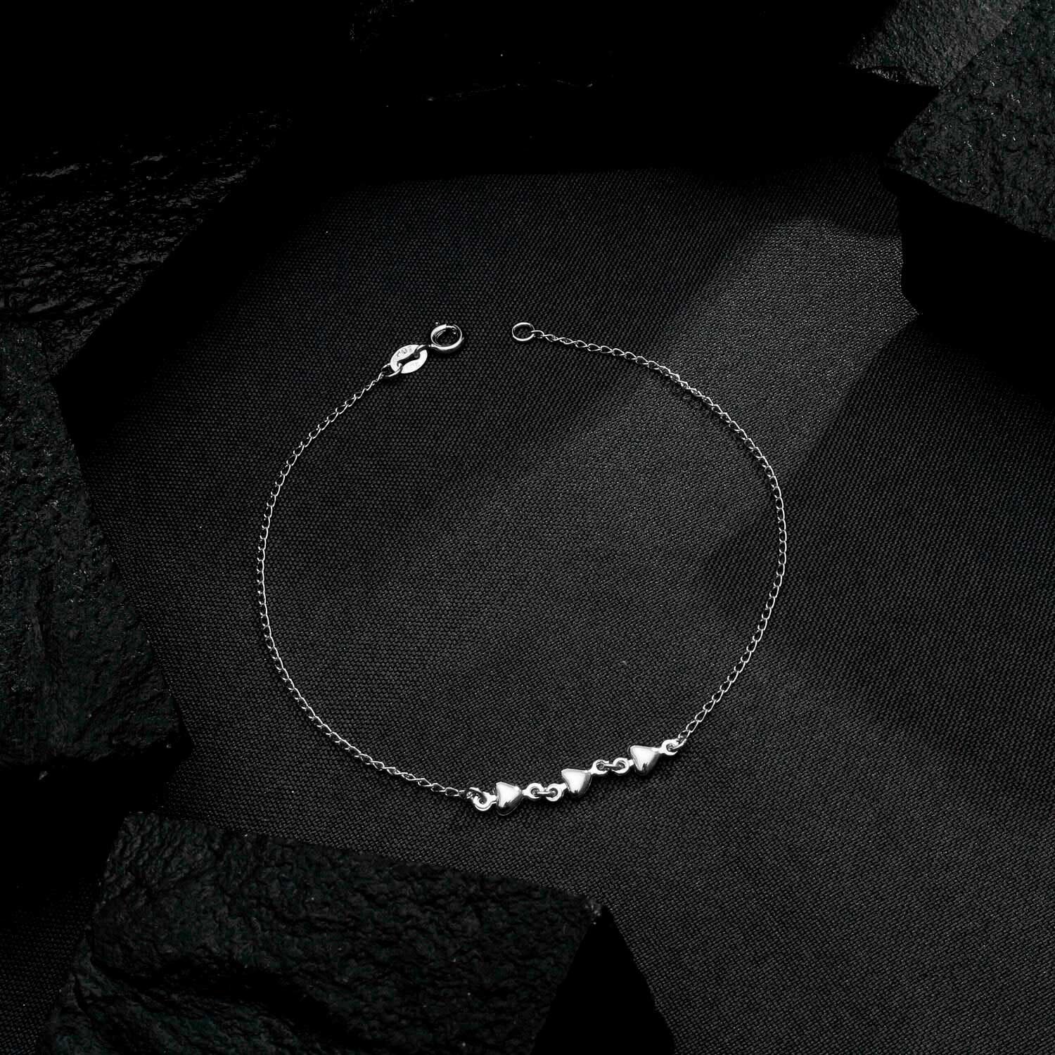 Tornozeleira Prateada Corações Lisa